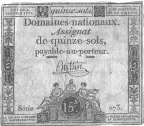 Ассигнация 1792 года выпуска достоинством в 15 солей.