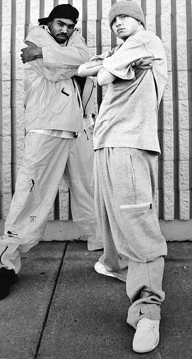 Дешон и Маршалл приносили сюда свои записи, читали тексты и даже успели понравиться владельцу магазина. Тот пару раз приглашал белого парня почитать свои тексты, но Маршалл каждый раз отказывался. Он был единственным белым рэпером в Детройте, да и во всей стране на тот момент были разве что Beastie Boys. Они начинали как андеграундная рок-группа, но очень скоро стали пробовать вставлять в свои треки элементы хип-хопа, а потом и полностью переключились на этот жанр. Несмотря на коммерческий успех, практически на каждом их выступлении находились люди, которые кричали: «Эй, белые, идите и играйте свой рок-н-ролл и не лезьте в нашу музыку». И эти выкрики поддерживала толпа. Маршалл попросту не представлял, что с ним сделают в клубе, если он не понравится публике, да и времени на все это у него не было.