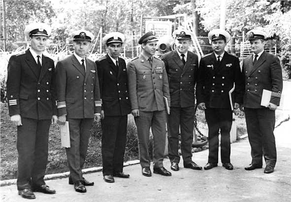 Офицеры военной разведки Польши с командованием 561-го ОМРП Специальной разведки ВМФ СССР Тогдашние «братья по оружию» изучают опыт советских водолазов-разведчиков. 1976 год. (Фото из архива автора)