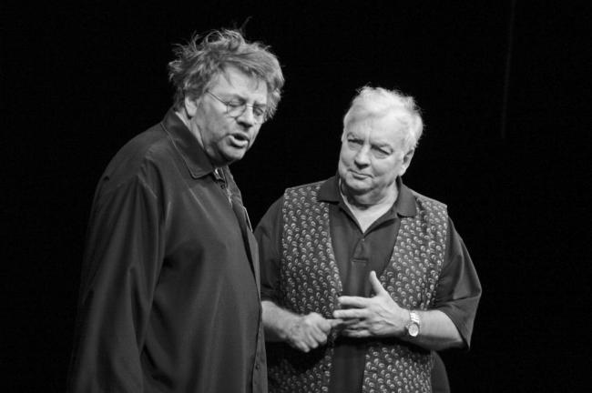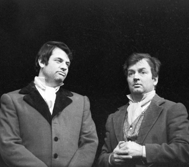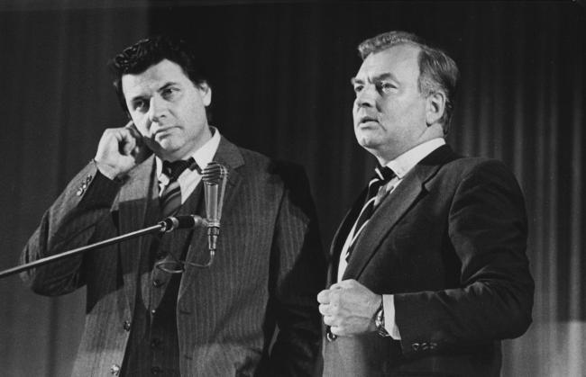 Судьба наша с Ширвиндтом такова, что еще со времен тех капустников мы идем вместе по жизни не только как коллеги, но и как друзья, и только позже сформировались в творческий дуэт двух персонажей-антагонистов. Наша эстрада начиналась еще с театральных подмостков Ленкома, где я играл чаще всего голубоглазого блондинчика — положительного комсомольца с озаренным лицом в стиле «Будь готов» и полубезумным идейным взглядом а-ля «Всегда готов», а Ширвиндт вечно был антиподом этого героя — асоциальным ненадежным типом, слащавеньким таким пошляком и циником-прохиндеем. Классический контраст двух противоположностей, сошедшихся в прочном единстве нового творческого пути конца 50-х — начала 60-х и освоивших далекое светлое будущее до начала XXI века. Один — скептик с сарказмом, другой — простак с наивными идеалами. Таковыми были наши Счастливцев и Несчастливцев, написанные позже Григорием Гориным специально под наше амплуа, такими являются Орнифль и Маштю, а также Думающий о России и Американец из «Привета от Цюрупы».