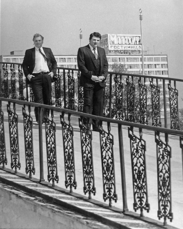 «…Наш дуэт с Державиным возник издревле: сначала мы просто родились в одном роддоме имени Грауэрмана, что ныне выполз на Новый Арбат, а при нашем появлении скромно стоял возле уютной Собачьей площадки. Была такая удивительная площадка в прошлой Москве, с памятником собаке, старинным особнячком, где размещался Институт Гнесиных, деревянными пивными ларьками, где пиво закусывали бутербродами с красной рыбкой и не менее красной икрой, где зимой в ледяное пиво доливали его же из большого чайника, подогретого почти до кипения, чтобы жаждущие аборигены не простудили горлышко, а на фасаде заведения было большое воззвание: «Требуйте долива пива после отстоя пены!» Потом мы «дружили домами» — Державин жил и живет в доме, где помещается Театральное училище им. Щукина, которое мы с ним впоследствии окончили (он позднее, как молодой, я раньше, как старый), а в детстве часто собирались в миниатюрной двухкомнатной квартирке на первом этаже этого же дома, где жила семья Журавлевых, где было весело и шумно, где вокруг младших Журавлевых, Маши и Таты (наших подруг и почти ровесниц), устраивались балы, вечера шарад и импровизаций, где пели, читали и танцевали под аккомпанемент Святослава Рихтера, думаю, мало кто может похвастаться тем, что имел в своей биографии такого «тапера».