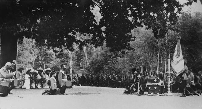 Император Николай II и цесаревич Алексей на молебне в войсках