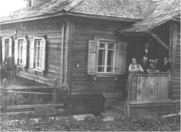 6. Дом, полученный в 1947 году отцом, от Ижевского завода. На крыльце дома, слева направо: Александра (двоюродная сестра), Федор Иванович (отец), Сергей (брат), Лида (сестра), Нина Павловна (мать), Борис.