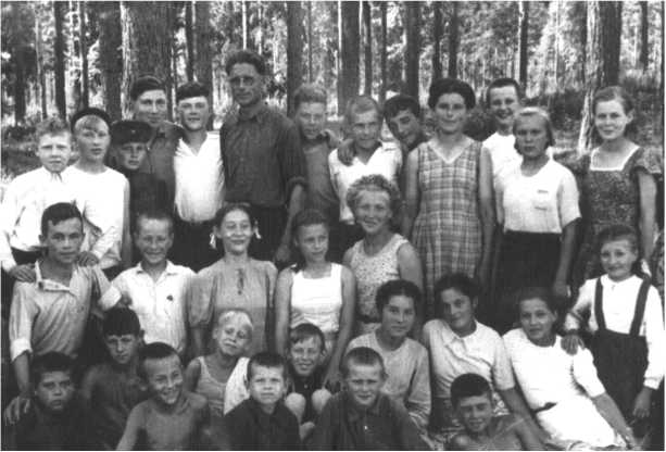 19. На сборах авиамоделистов в окрестностях Ижевска. Авиамоделисты участники сборов с директором ИЖСЮТ, руководителем авиамодельного кружка В.Л. Фетцером.