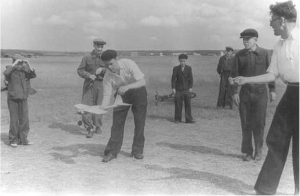 Во время нашего полета по местной дороге нас сопровождала грузовая машина, полуторка, и шоферу удалось довольно близко подъехать к месту приземления. Но прямые колосья ржи закрывали его. Летчик это тоже понял и стал делать крутые виражи над этим местом. Когда на земле обнаружили его, наш самолет, помахав крыльями, отправился в обратный путь, и вскоре мы вновь оказались среди своих товарищей. Мой руководитель был очень доволен тем, что наш полет удался, что мою модель быстро нашли, и наша команда получила зачетные очки благодаря этому успеху. Когда я рассказал Виталию Леопольдовичу Фетцеру, а это и был наш руководитель авиамодельной лаборатории, о деталях полета, он хитро прищурил глаза и спросил: «Ну как, будем осваивать воздушный океан?» «Обязательно будем», – ответил я.
