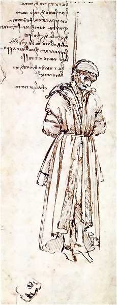 Повешенный Бернардо ди Бандино Барончелли — убийца Джулиано Медичи. Рисунок Леонардо да Винчи, 1479 г.