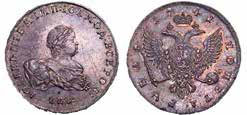 Серебряный рубль с изображением императора Иоанна Антоновича (1741). После свержения императора изъят из обращения.