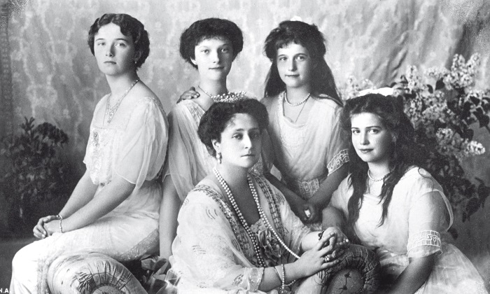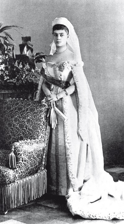 Я помню, что она была одета в такое же серебряное платье, что и моя сестра Анастасия Михайловна и как все Великие Княжны в день их венчания. Я помню также бриллиантовую корону на ее голове, несколько рядов жемчуга вокруг шеи и нисколько бриллиантовых украшений на ее груди.