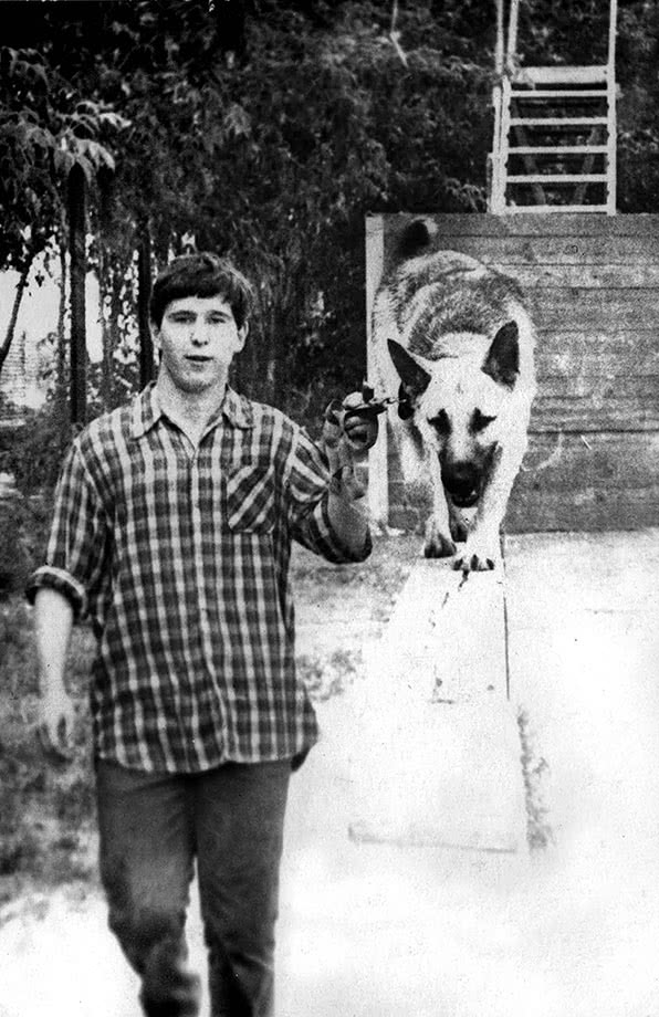 1972 г. Зарабатываю первые деньги: в 14 лет я получил диплом инструктора служебного собаководства и теперь мог обучать собак. Летом я устроился младшим инструктором на собачью площадку в Лианозове и тренировал особенно нерадивых собак. Эту овчарку я хорошо помню: его звали Джерри, и он с редким для восточно-европейской овчарки упрямством не хотел выполнять команды своей хозяйки. Я был крайне заинтересован в положительных результатах, и не только из-за трех рублей, получаемых за каждое занятие: хозяйке было лет восемнадцать и звали ее Марина. Но как я ни старался, она не обращала на меня внимания. За что Джерри доставалось от меня вдвойне.