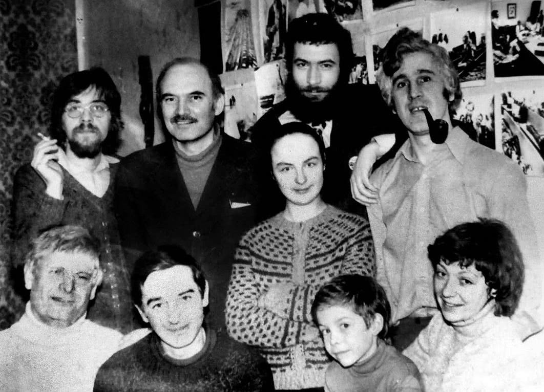 1982 г. Группа за установление доверия между СССР и США. Сидят: Юрий Медведков, Валерий Годяк, сын Юрия и Ольги Медведковых, Ольга Медведкова. Стоят: Сергей Батоврин, Марк Рейтман, Мария и Владимир Флейшгаккеры, Владимир Бродский. Эта фотография членов Группы Доверия была сделана на квартире Сережи Батоврина. Его жена Наташа и я сидели на кухне и пили чай. И не попали в историю.