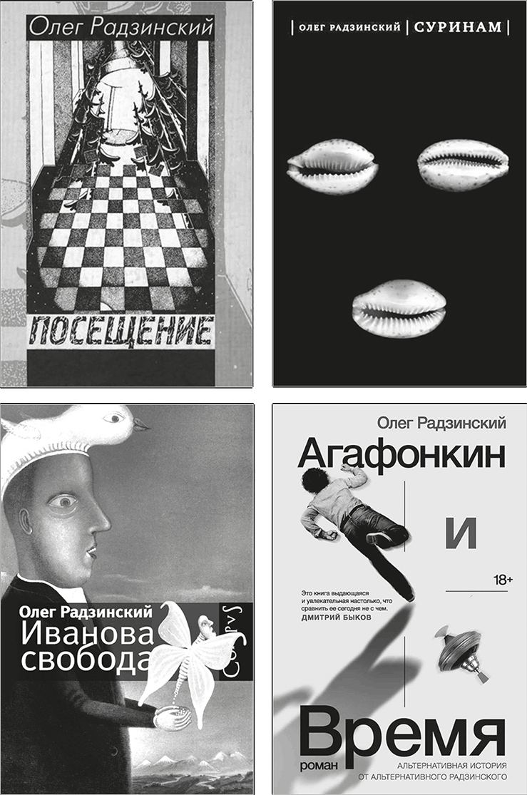 Моя первая книга рассказов “Посещение”, изданная в 2000 г. Эти рассказы о тюрьме и ссылке написал Олег Радзинский. Не я. Другой. По крайней мере не я сегодняшний. В 2008 г. вышел роман “Суринам”, куда среди прочего вошли впечатления о моих гайанских приключениях. Затем – сборник рассказов “Иванова свобода” (2010) и роман “Агафонкин и Время” (2014).
