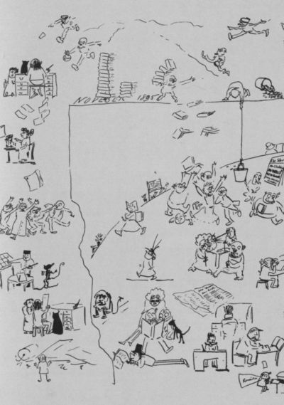 На этом рисунке Уэллс с обычным для него юмором изобразил путь молодого литератора к успеху