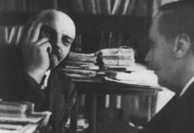 Писатель консультирует актеров, играющих в фильме «Облик грядущего». 1936 г.