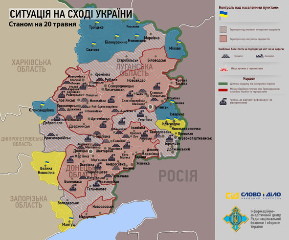 Территории, подконтрольные ЛДНР по состоянию на 20 мая 2014 г.