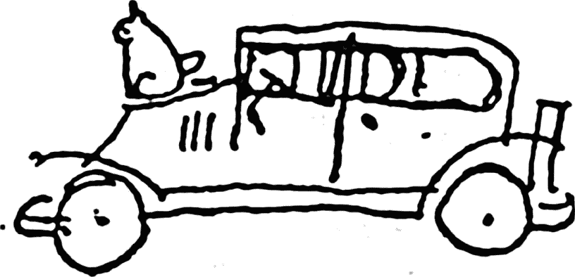 Далее следовал рисунок «Рено» с сидящей на капоте кошечкой.