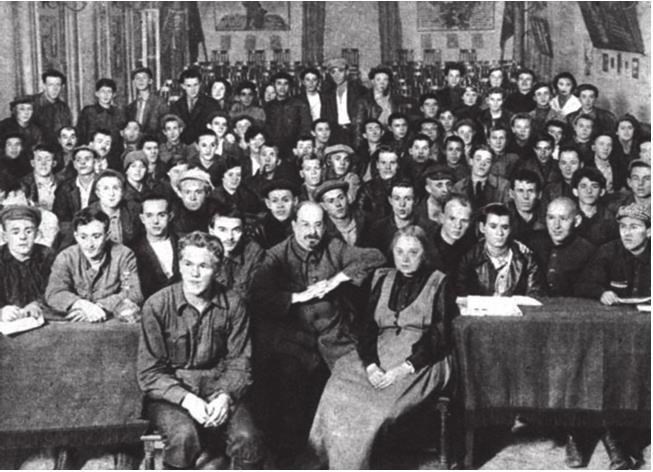 В центре справа налево: Надежда Крупская, Анатолий Луначарский, Николай Чаплин – члены пленума ЦК ВЛКСМ. 1925 год