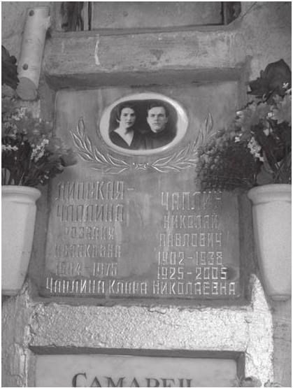 Символическое захоронение Николая Чаплина с женой и дочерью на Новом Донском кладбище, колумбарий 14, секция 58