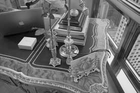 И так во всех комнатах. В кабинете Трампа помимо картины Ренуара «В ложе», антиквариата, зеркал, статуэток и соответствующей мебели, из современных вещей добавлены лишь компьютер и ваза с цветными карандашами, видимо, для сына и жены.