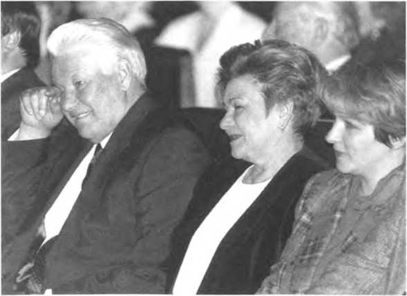 Борис Николаевич с супругой Наиной Иосифовной и дочерью Татьяной на вечере «Московская юморина» в Кремлевском Дворце съездов. 1996 г.