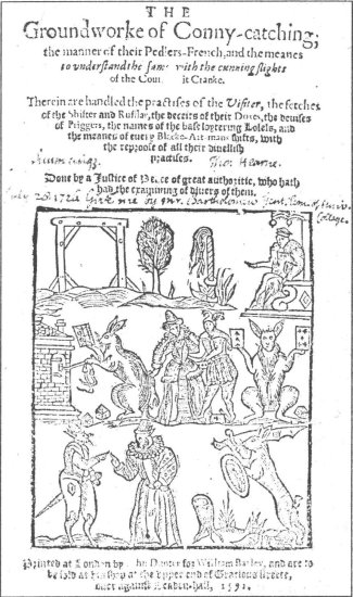 Судьба Роберта Грина печальна. Он был почти на шесть лет старше Шекспира, красив, хорошо сложен, с неухоженной рыжей бородой. Он получил степени магистра и в Оксфорде, и в Кембридже, но не завоевал положения в обществе. В 1592 году, в последний год своей жизни, он опустился до заурядного литературного поденщика, создателя истории лондонского преступного мира, выпуская один за другим памфлеты о мошенниках, шулерах и содержательницах публичных домов Лондона, которые он знал хорошо, слишком хорошо. У него был поклонник, вор-карманник, по прозвищу Болл Нож, который ловко орудовал кинжалом, когда его хозяину угрожал один из кредиторов. Однажды, когда ему вручили приказ о явке в суд, Грин заставил прислужника съесть его, восковую печать и все остальное с пустого блюда в таверне. У него была жена, но он жил с сестрой Болла, опустившейся шлюхой, которая подарила ему потомка, получившего имя Фортунат. Грин слишком много пил, и памфлеты вроде «Замечательного разоблачения мошеннического промысла» и двух частей «Ловли кроликов» писались, чтобы хватило на кварту эля или бутылку рейнского вина. Его печень и почки вышли из строя, и он предался сентиментальным сожалениям о своей потерянной жизни. Хочется верить, что открытия в области лондонских преступлений, которым посвящены его последние памфлеты, сделаны им не в погоне за сенсацией, но из искреннего желания преподать наглядные уроки излишне доверчивым людям. Грин вырос в набожной семье, но нет ничего благочестиво худосочного в его работе, написанной в последнее лето его жизни. Он обладал энергичным стилем, и его все еще приятно читать.