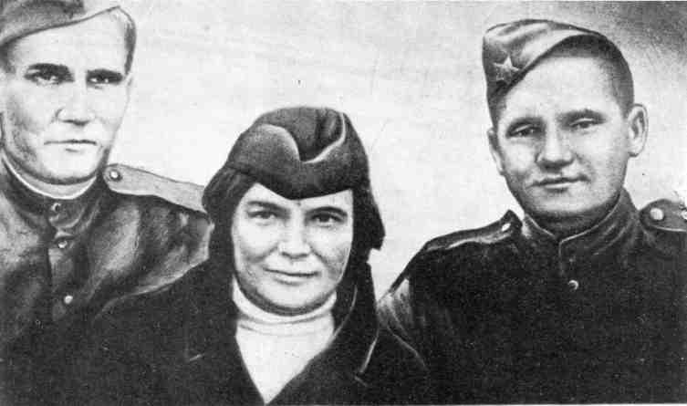 Семья Червяковых: Александр Михайлович, Наталья Ивановна (Черемных), их сын Володя. Брянский лес. Октябрь 1943 года.