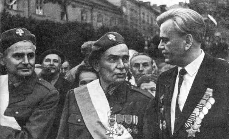 Перемышль. А. А. Соколов беседует с ветеранами Войска Польского — братьями по оружию.