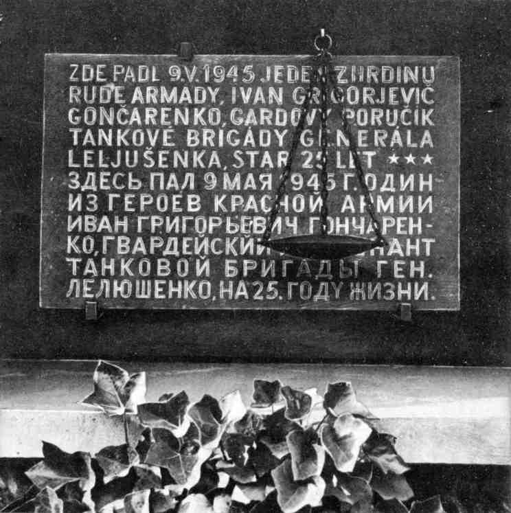 Прага. Мемориальная доска на месте гибели гвардии лейтенанта И. Г. Гончаренко.