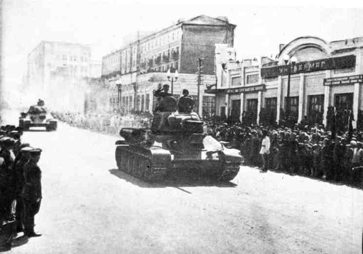 Челябинск 9 мая 1943 года. После вручения добровольцам всенародного Наказа по улице Кирова прошли танки.