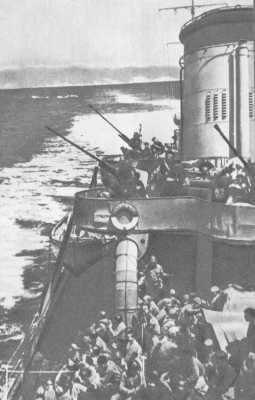 Отбиваться от бомбардировщиков Ю-87, с которыми черноморцы познакомились в те сентябрьские дни, кораблям оказалось очень трудно. Страшно было подумать, какие потери мог понести флот, если бы мы, как сперва предполагалось, оставили в районе высадки крейсера «Красный Кавказ» и «Красный Крым», представлявшие для самолетов более крупные цели и уступавшие эсминцам в скорости хода и маневренности. (Крейсера ушли с рейда Григорьевки еще до рассвета, как только высадили на катера и канлодки последние группы десантников.)