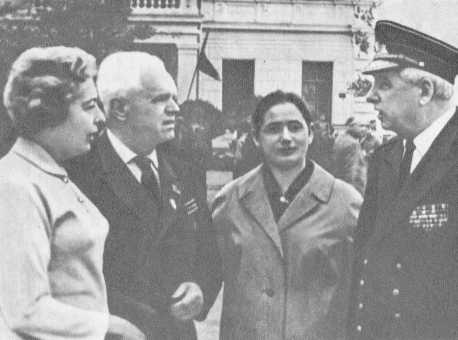В ноябре 1966 года в Севастополь съехались ветераны, чтобы отметить 25-летие начала его обороны. Справа — бывший командир 7-й бригады морской пехоты Е. И. Жидилов, второй слева — бывший начальник политотдела бригады А. М. Ищенко