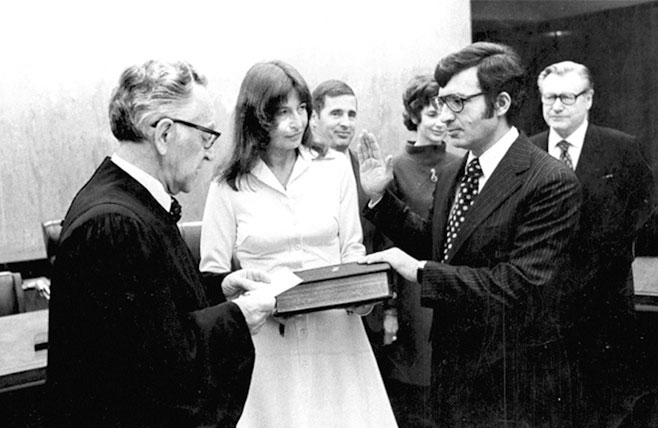 Присяга при вступлении на должность. Судья Верховного суда, Виктор и Магдалена Гилинские. Крайний справа – вице-президент Нельсон Рокфеллер (1975)