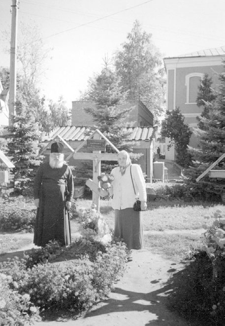 Протоиеоей Валерий Клинов с матушкой Тамарой у могилы иеросхимонаха Нифонта (Санталова) в Задонском Рождество-Богородицком мужском монастыре