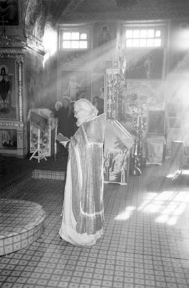 Отец Павел в алтаре храма Димитрия Солунского в с. Хорошилово