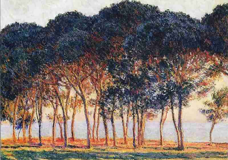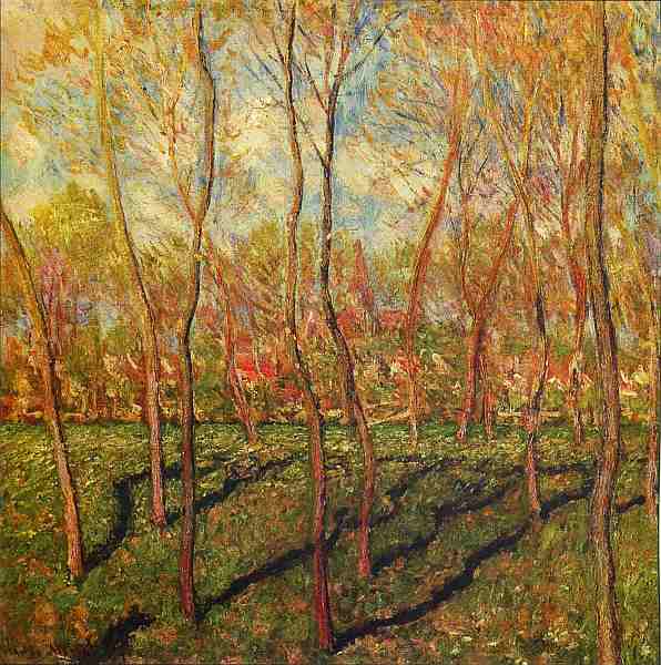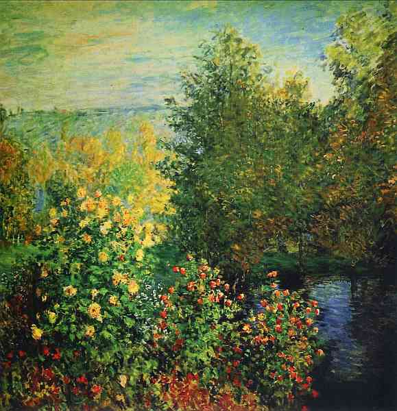 Поздние произведения Моне находятся на грани предметного и беспредметного искусства. В качестве примера можно привести работу «Сад с прудом в Живерни» (около 1920, Музей изящных искусств, Гренобль). Уголок сада художника предстает таинственным местом, спрятанным в густых зарослях. Эта работа, безусловно, предметна: здесь четко построена композиция, различимы очертания ветвей. Кажется, что цвет играет самостоятельную роль в этом произведении, он декоративен в преломлении гаснущего зрения художника. Картина производит драматическое впечатление, благодаря нереалистичной условной цветопередаче. Цвет экспрессивен. Это уже не импрессионизм — в технике письма и художественной концепции, это отражение внутреннего мира старого человека.