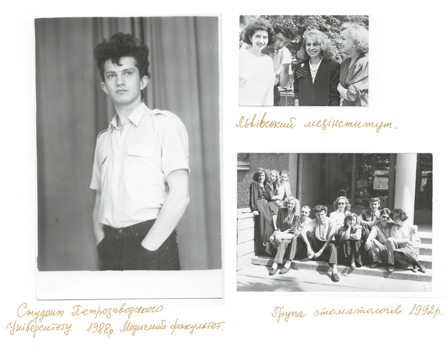 Львівський медінститут традиційно не дорахував бали при вступі, і ми, маючи в запасі рік до мобілізації, поїхали поступати в Карелію. Пробули там два місяці, переходили на російську мову на курсах, сходили цей Петрозаводськ вздовж і впоперек, і все більше розуміли безвихідь, в яку потрапили, адже звідти нікого не переводили в інші ВУЗи. За перший курс я була в Карелії дев’ять разів. Тоді Андрійка по закінченню першого курсу забрали в армію. Там я його і проводжала, сама, з далекої мерзлої землі Карельської… А про все, що було далі, розповів Андрійко у своїх книжках, де сльози переводив у сміх і, як у Карелії сказала дочка нашого друга: «Тебе, Андрей, людей не лечить, а смешить надо…»
