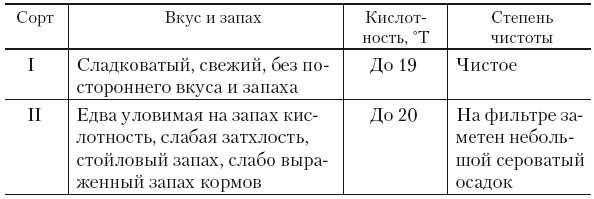 На основании органолептической оценки, степени чистоты и кислотности устанавливают качество молока и пригодность его для изготовления сыра, брынзы и других продуктов (табл. 3).