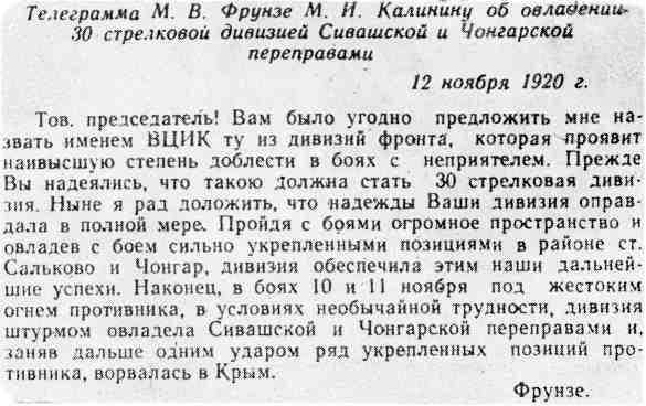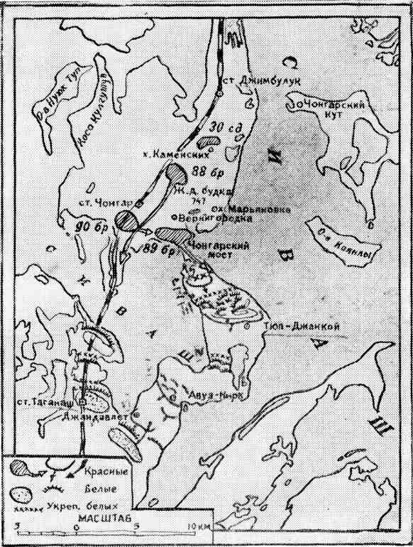 Схема атаки 30-й дивизией Чонгарских укреплений. Положение на 11 ноября 1920 года.