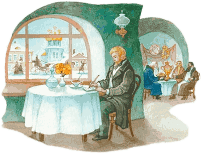 Так не сказка ли это? Вот такую-то сказку и захотелось Петру Ильичу немедля переложить в звуки, записать нотами. Зашел он в трактир «Великобритания»(а раньше в хороших трактирах можно было и поесть, и почитать книгу, и записать что-нибудь). Так вот, зашел Петр Ильич в трактир, достал записную книжечку и стал (правда, не Волшебным Пером, а обычным карандашиком) записывать: как зимой снег идет, да как ямщик поет, как березы растут, да как Москва шумит, разгулялась!..