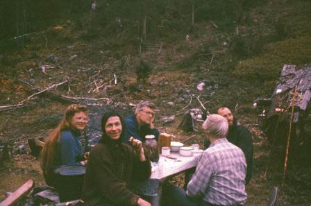 Геологи, как гостеприимные хозяева, конечно, в первую очередь ведут нас на кухню. Повариха выставляет все самое лучшее, что у нее осталось от ужина рабочего люда. Промявшись на тропе, с удовольствием поглощаем гороховый суп, картошку тушеную с мясом и оладьи. Попутно женщинам с кухни не терпится узнать, как там у Лыковых? Мы «зацепились языками» (как говорит Карп Иосифович) и рассказывает им свои новости. В свою очередь женщины делятся своими впечатлениями о встречах с Лыковыми. Из их разговоров узнаем кое-что и об отношении Лыковых к нам. Например, повариха рассказывает, что Агафья делится с ней: «Игорь Павлович чаще молчит, а когда заговорит, его слушать надо — резоны приводит». Выходит, нас тоже тщательно изучают и оценивают.