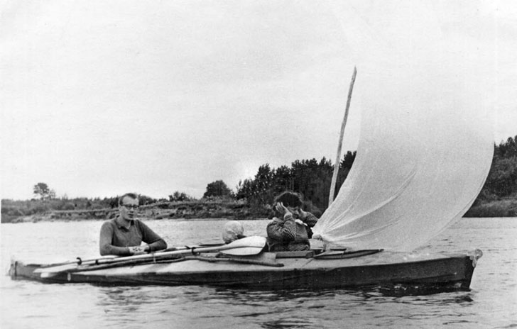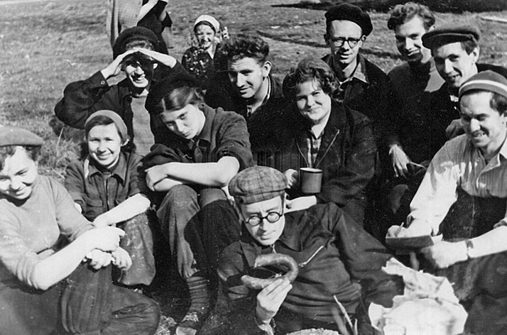 В походе по р. Медведице. В пирамиде – Маша Чудакова, Танечка Паперная, Вадик Паперный. В партере – А. Чудаков