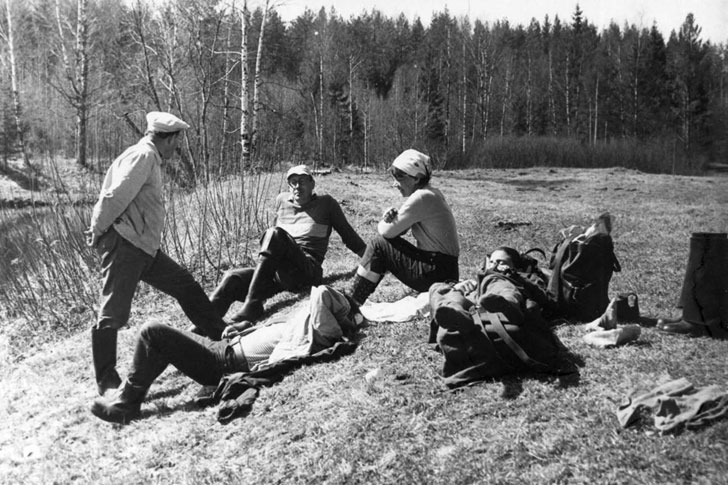 Река Протва. На привале. З. С. Паперный, А. Чудаков, М. Чудакова