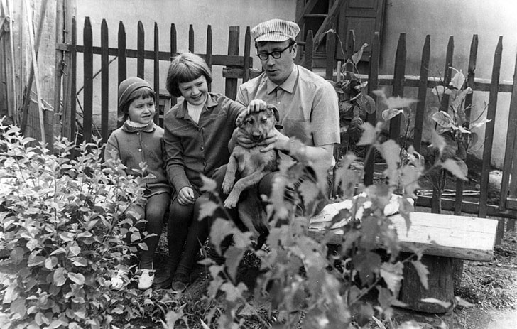Лето 1972 г. В Щучинске с дочерью Машей, племянницей Таней и псом Буяном