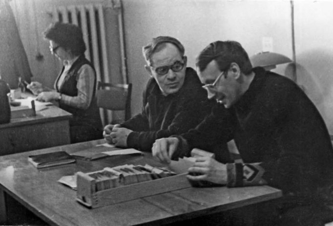 17 апреля 1976 г. Ленинский субботник в секторе русской классической литературы в ИМЛИ. Э. А. Полоцкая, З. С. Паперный, А. Чудаков
