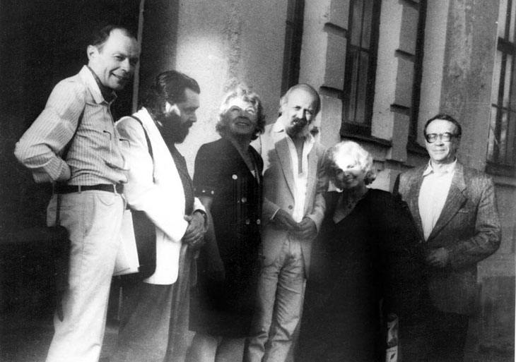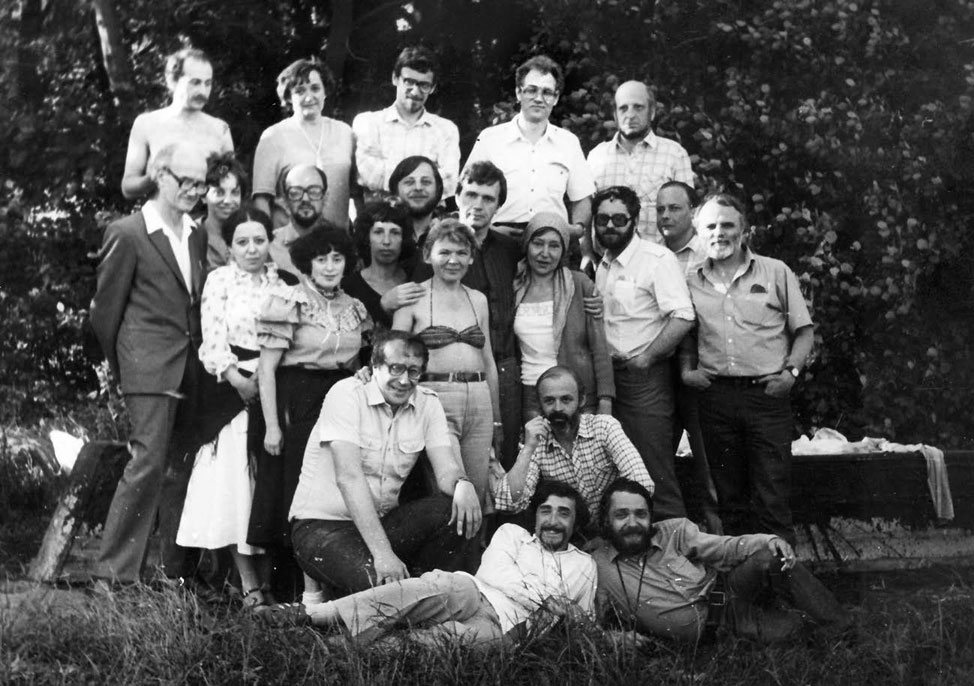 Июнь 1984 г. Вторые Тыняновские чтения в Резекне. 1-й ряд – В. Сажин и Г. Левинтон; 2-й – А. Чудаков и А. Осповат; 3-й – М. Л. Гаспаров, Н. Брагинская, С. Черноброва, Т. Никольская, М. Чудакова, Л. Степанова, Р. Тименчик, А. Белоусов, А. Парнис; 4-й – С. Шведов, М. Ямпольский, Ю. Цивьян; 5-й В. Руднев, Л. Щемелева, Б. Дубин, Л. Гудков, Ю. А. Молок