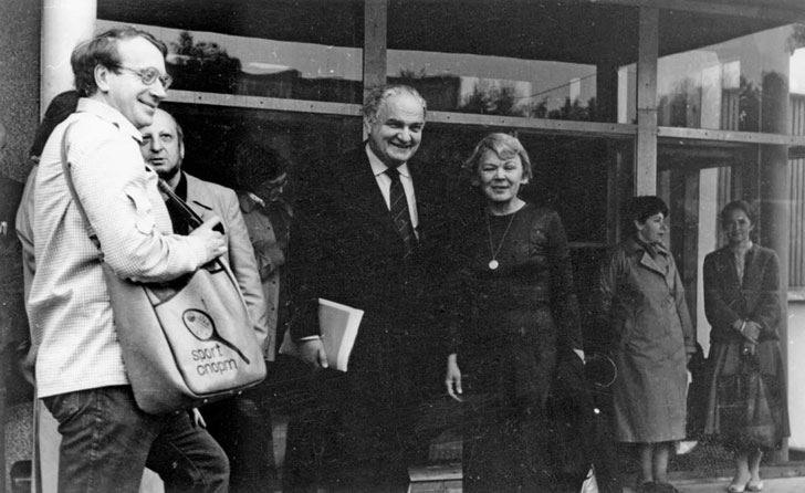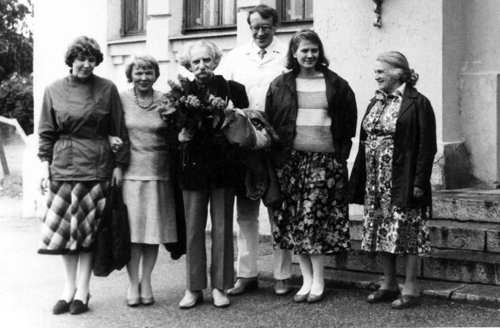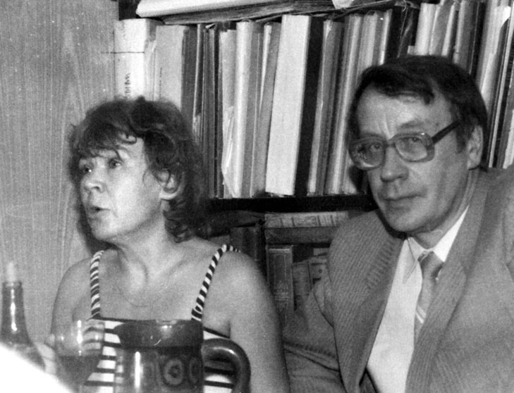 Май 1984 г. Первые Тыняновские чтения в Резекне. А. Чудаков с Е. Душечкиной и Л. Я. Гинзбург