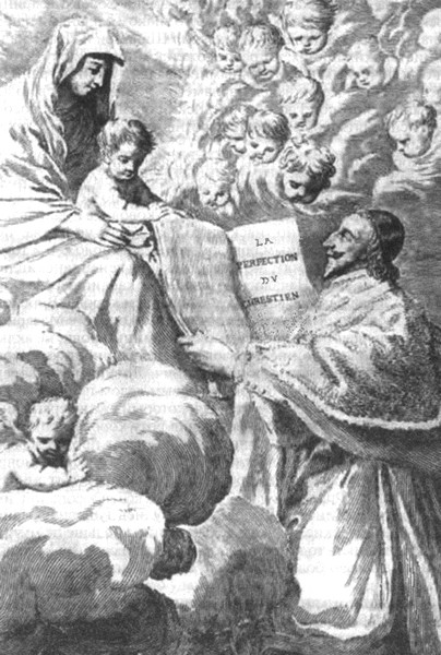 Фронтиспис трактата Ришельё «О совершенстве христианина», написанного в 1639 году. Гравюра К. Меллана. 1647 г.