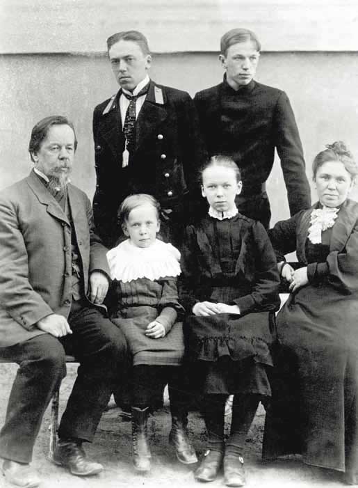 Семья А. С. Попова. Стоят (слева направо) сыновья Степан и Александр; сидят А. С. Попов, дочери Екатерина и Раиса, жена Р. А. Попова. 1905 г.