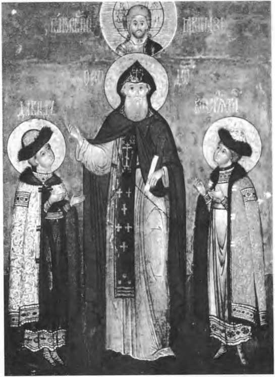 Икона XVII в. Предки князей Львовых святые князья ярославские Давид, Федор, Константин.