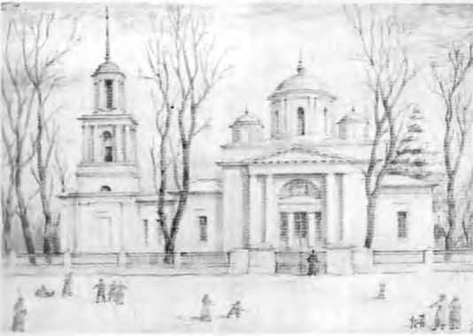 Поповка. Церковь Смоленской иконы Божьей Матери. Рисунок Н. Исселенова, близкого друга семьи Львовых.