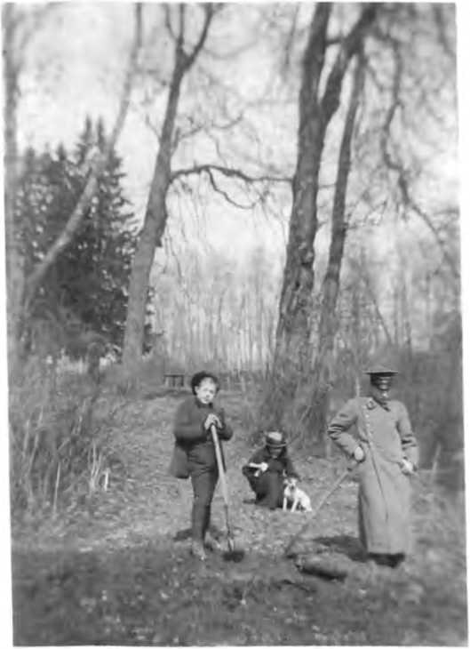 Кн. Георгий Евгеньевич Львов с родителями в Поповке. У дерева стоит Мария Евгеньевна Львова.